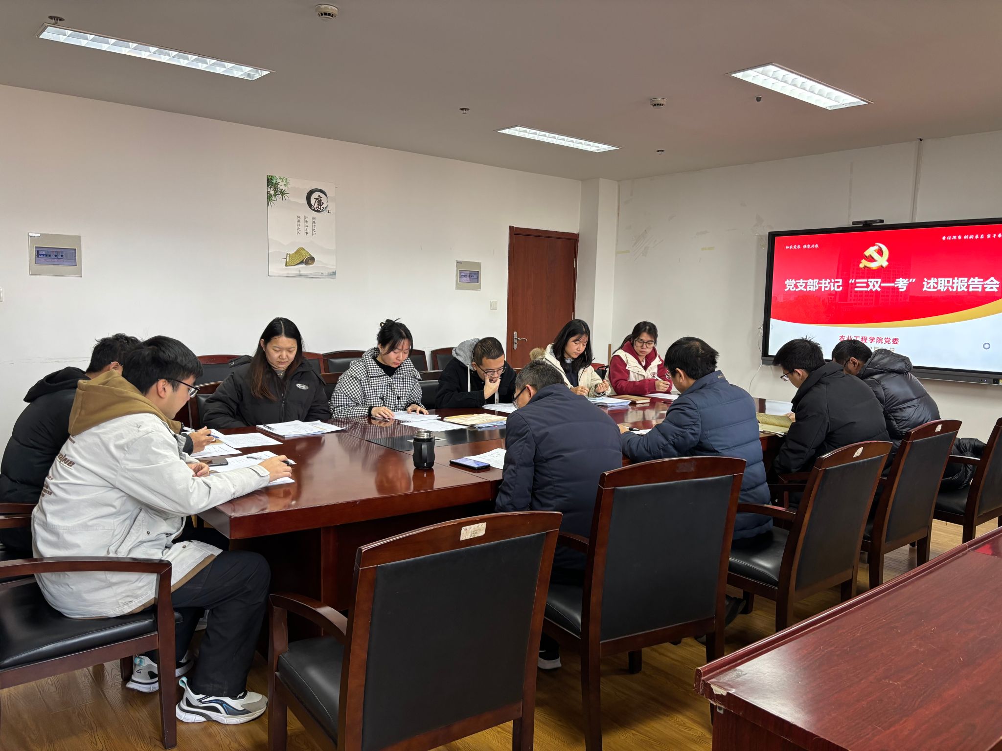 12月26日,77779193永利官网集团2024年度党支部书记“三双一考”述职报告会在学院1026会议室召开,77779193永利官网集团党委书记廖志凌主持会议,党委副书记、副院长周军及辅导员参会,各师生党支部书记进行述职答辩。