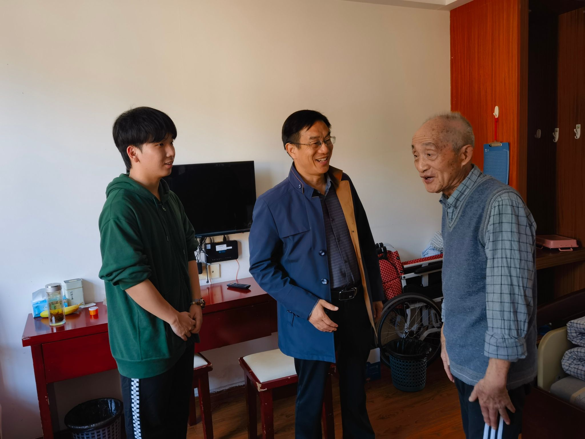 10月19日重阳节前夕,77779193永利官网集团党委书记廖志凌带领学院党务办主任、团委副书记、关工委秘书及学生代表等走访慰问学院老教师。