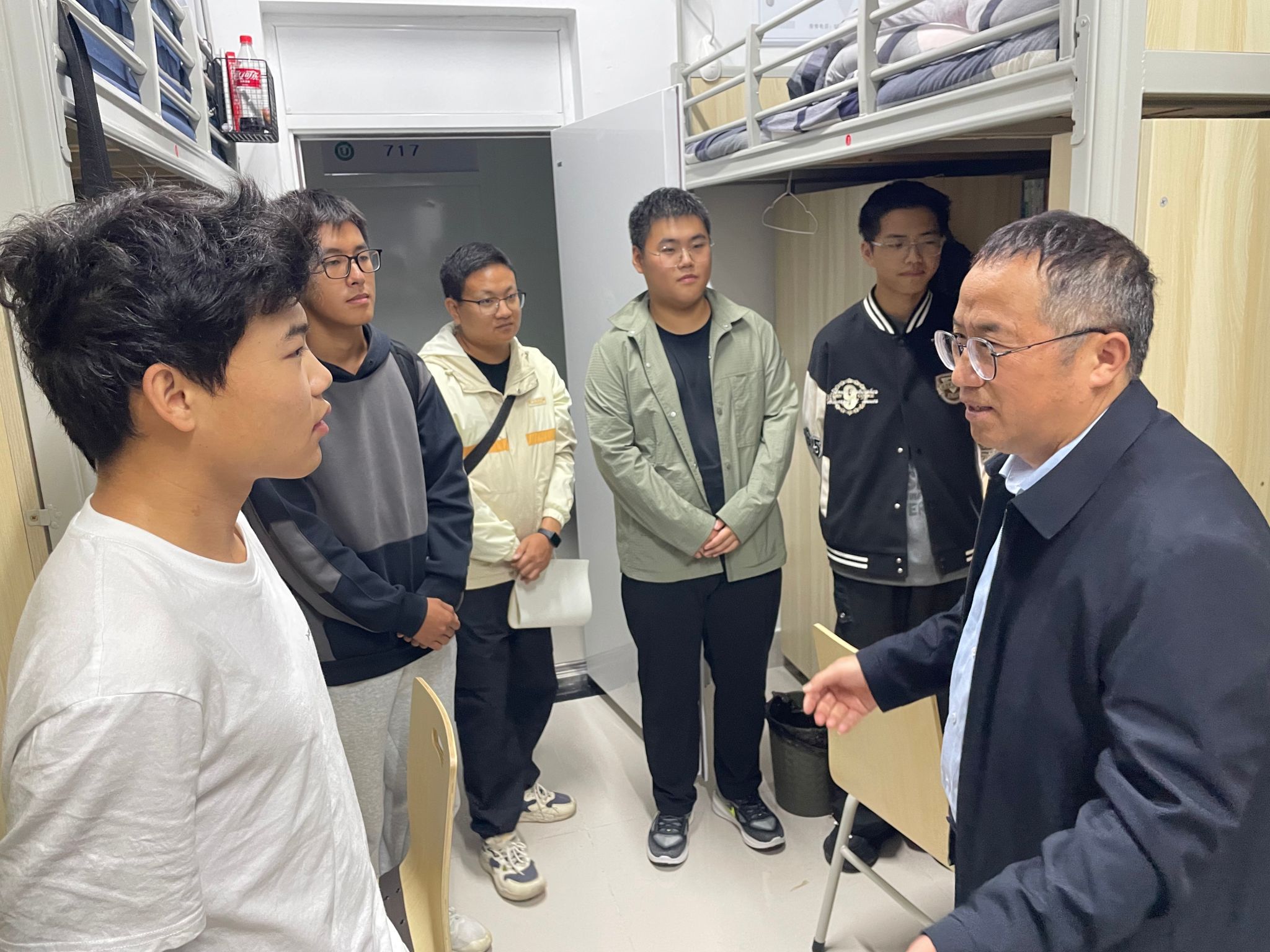 在农业智能专业2024级新生宿舍,邱白晶老师、陈树人老师分别与结对班级学生深入交流,鼓励学生坚定理想信念、扎实学科知识、强化身体素质,努力为农业强国建设贡献新一代农机人的智慧和力量。
