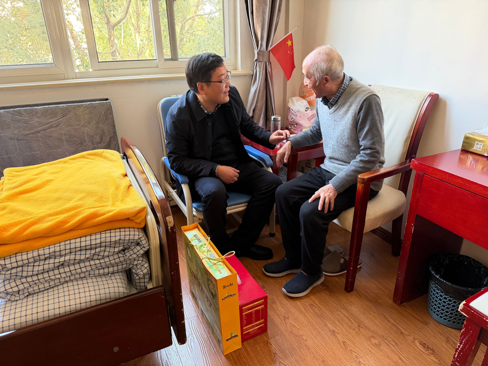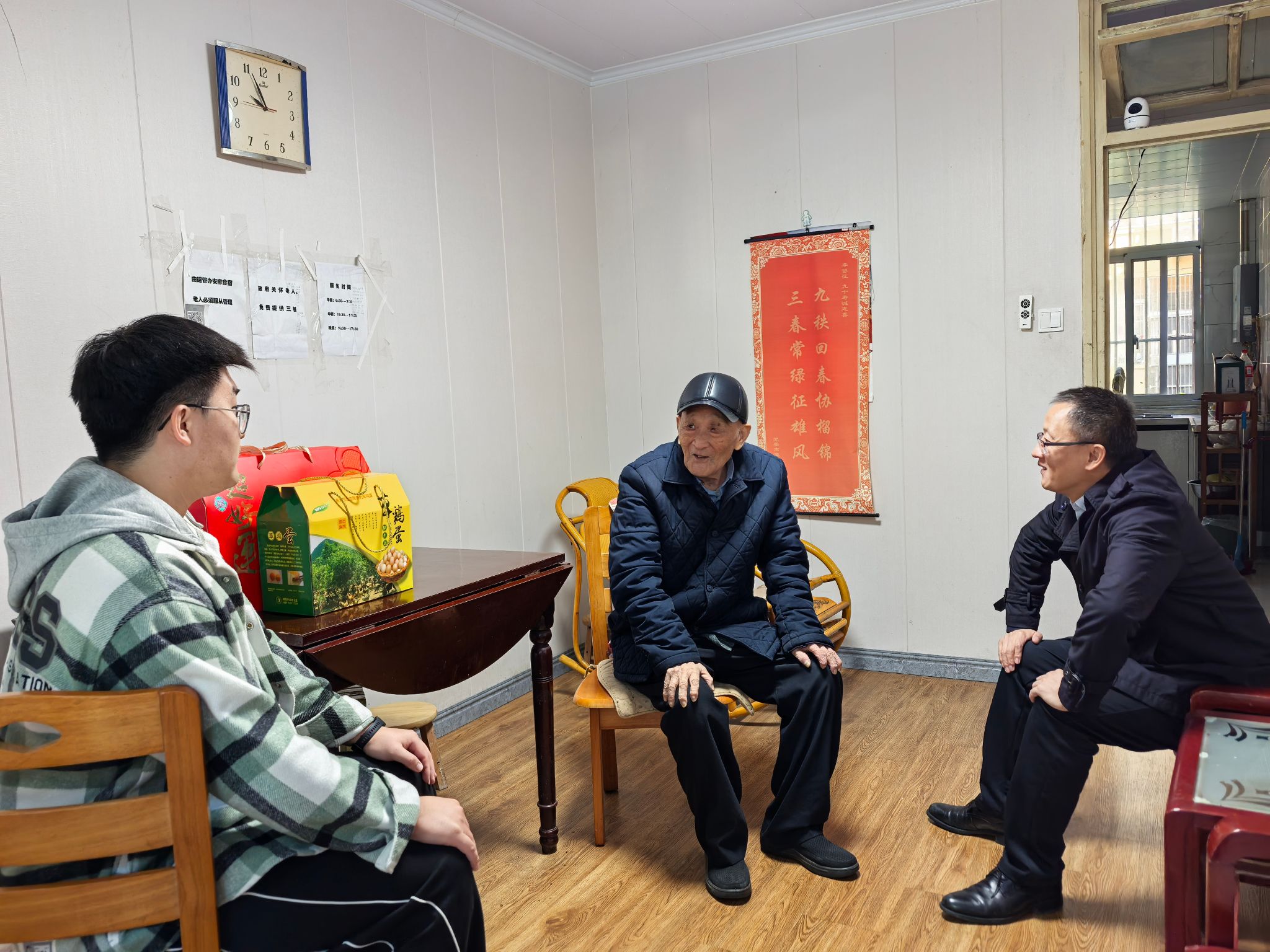廖志凌与学院李耀明教授就学院学科发展、科学研究、青年人才培养等进行了交流,李教授分享了数十年工作和最新调研的心得体会,对学院相关工作提出建议。黄文岳等看望了90岁高龄的王光亮老师,表达了师生对其晚年生活的祝福,并追忆江大往事,汇报学校学院发展最新动态,衷心感谢老教师为学院发展作出的巨大贡献。周军带领师生代表走访了李协征和孙宏伟老师,询问了老师们的近况,表达了节日祝福,并协助检查居家安全设施。