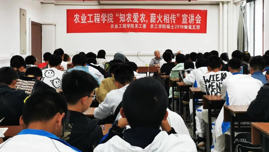 10月7日下午,校关工委讲师团成员、原校关工委副主任李国文教授在耒耜大楼F205为学院师生作了“知农爱农,薪火相传”的主题宣讲,学院相关教师、硕士18级党支部及2020级新生参加了宣讲会。
