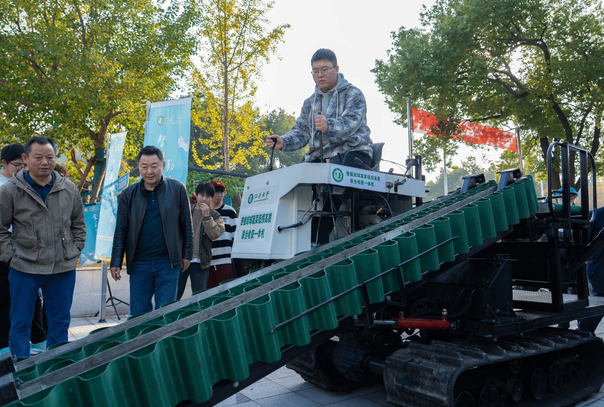活动现场设置了国风舞曲、民族舞蹈、智能农机装备展示、花生剥壳对抗赛、草药辨识、植物配对等活动,通过展览、体验、品鉴等多种形式让学生走进农耕文化,沉浸式体悟中华优秀传统文化的精髓与魅力。陈树人老师现场为同学们讲解农机装备。
