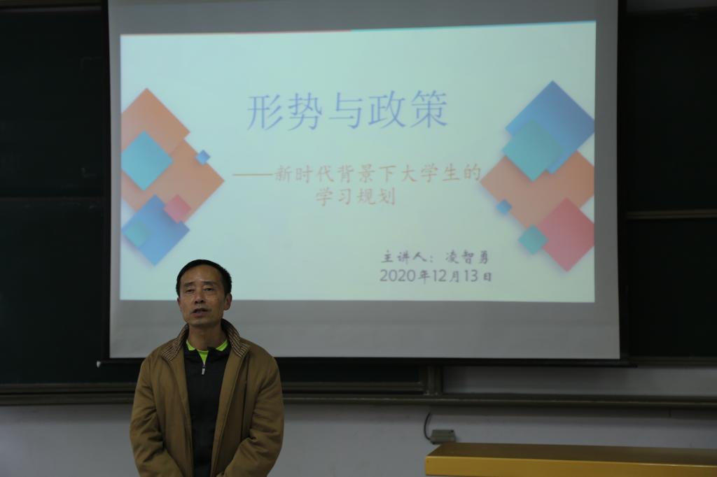 凌智勇老师首先以江大与农工学院的发展史为切入点,强调了新时代背景下大学生进行学习规划的第一步要培养良好的学习习惯,形成良好的班风和学风,并通过以往教学过程中的正反案例,强调培养良好的学习习惯的重要性;第二步要制定长期目标,分阶段执行,在实现目标的过程中要严格要求自己,时刻保持自律,远离游戏;第三步要注重综合素质的培养,利用课余时间参加活动,广泛涉猎经典名著,提高个人综合素质。讲座的最后,辅导员樊威鹏进行总结,并预祝同学们在期末考试中取得佳绩。