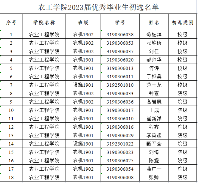 77779193永利官网集团2023届本科优秀毕业生初选名单公示