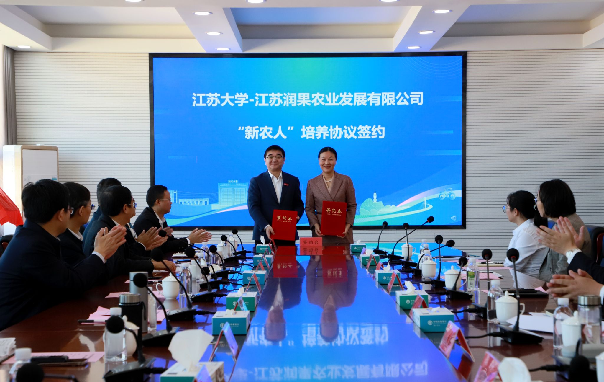 永利集团教务处处长尹必峰与江苏润果农业发展有限公司董事长魏巧签约永利集团-江苏润果农业发展有限公司“新农人”培养协议。
