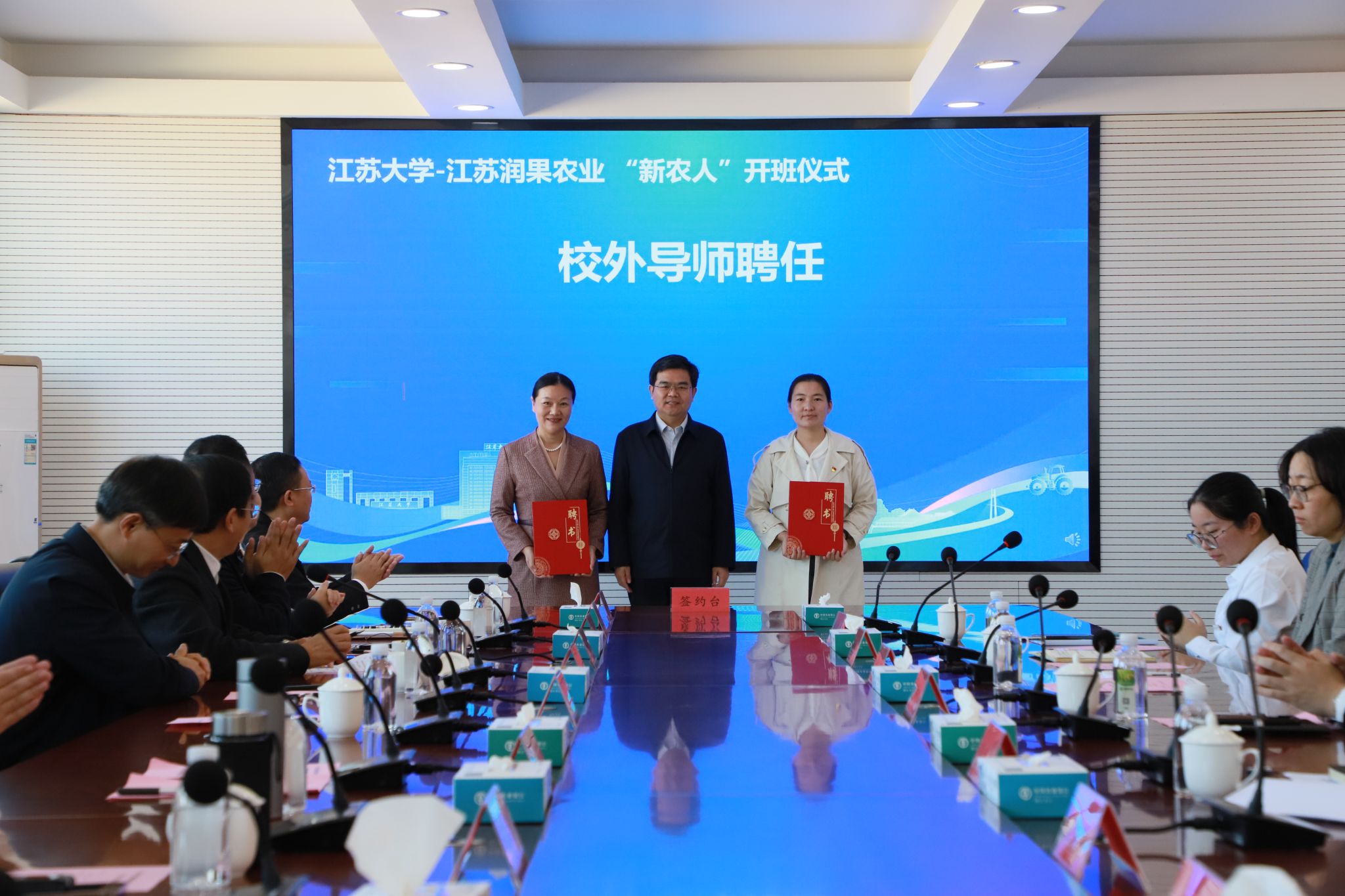 永利集团党委书记李洪波聘任江苏润果农业发展有限公司董事长魏巧、支部书记戴从娟为“新农人”班级校外导师。